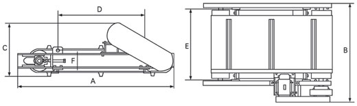 總體尺寸小,可稱為輕型永磁帶式除鐵器,長度、高度分別是C型的:70%、86%。